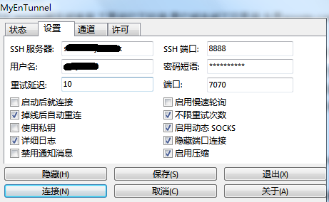 后面在网上找到有使用vpn客户端去访问的.不过现在提供免费的vpn服务的少了,绝大多数都是要钱的.还有一些所谓的翻`墙软件,如自`由`门之类的,咱也不敢用.后面有一篇文章提到ssh访问外网的的文章引起了我的注意--使用ssh加myentunnel工具来解决外网访问问题.