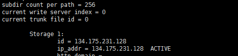 # 连接超时时间 connect_timeout=10 # Tracker Server tracker_server=192.168.2.231:22122 # StorageServer 默认端口 storage_server_port=23000 # 如果文件ID的uri中包含/group**,则要设置为true url_have_group_name = true # Storage 配置的store_path0路径,必须和storage.conf中的一致 store_path0=/home/data/storage # the base path to store log files base_path=/home/logs/storage