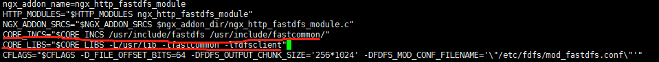 首先解压fastdfs-nginx-module_v1.16.tar.gz,修改/fastdfs-nginx-module/src/config文件。去掉所有的local(三个)
