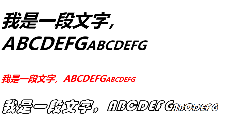 <!DOCTYPE html> <html> <head> <meta charset="UTF-8"> <title></title> <style type="text/css"> .p1{ color: red; font-size: 30px; font-family: "微软雅黑"; /* * font-style可以用来设置文字的斜体 * - 可选值: * normal,默认值,文字正常显示 * italic 文字会以斜体显示 * oblique 文字会以倾斜的效果显示 * - 大部分浏览器都不会对倾斜和斜体做区分, * 也就是说我们设置italic和oblique它们的效果往往是一样的 * - 一般我们只会使用italic */ font-style: italic; /* * font-weight可以用来设置文本的加粗效果: * 可选值: * normal,默认值,文字正常显示 * bold,文字加粗显示 * * 该样式也可以指定100-900之间的9个值, * 但是由于用户的计算机往往没有这么多级别的字体,所以达到我们想要的效果 * 也就是200有可能比100粗,300有可能比200粗,但是也可能是一样的 */ font-weight: bold; /* * font-variant可以用来设置小型大写字母 * 可选值: * normal,默认值,文字正常显示 * small-caps 文本以小型大写字母显示 * * 小型大写字母: * 将所有的字母都以大写形式显示,但是小写字母的大写, * 要比大写字母的大小小一些。 */ font-variant: small-caps ; } .p2{ /*设置一个文字大小*/ font-size: 50px; /*设置一个字体*/ font-family: 华文彩云; /*设置文字斜体*/ font-style: italic; /*设置文字的加粗*/ font-weight: bold; /*设置一个小型大写字母*/ font-variant: small-caps; } .p3{ /* * 在CSS中还为我们提供了一个样式叫font, * 使用该样式可以同时设置字体相关的所有样式, * 可以将字体的样式的值,统一写在font样式中,不同的值之间使用空格隔开 * * 使用font设置字体样式时,斜体 加粗 小大字母,没有顺序要求,甚至可写可不写, * 如果不写则使用默认值,但是要求文字的大小和字体必须写,而且字体必须是最后一个样式 * 大小必须是倒数第二个样式 * * 实际上使用简写属性也会有一个比较好的性能 */ font: small-caps bold italic 60px "微软雅黑"; } </style> </head> <body> <p class="p3">我是一段文字,ABCDEFGabcdefg</p> <p class="p1">我是一段文字,ABCDEFGabcdefg</p> <p class="p2">我是一段文字,ABCDEFGabcdefg</p> </body> </html>