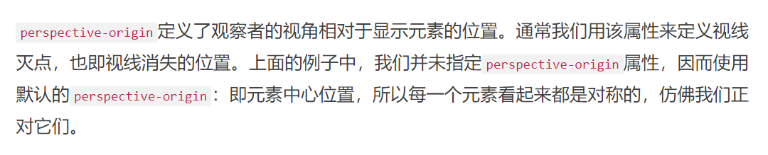 同perspective属性,也是设置在父元素上,对后代元素起作用。 这个属性来设置你在X, Y轴坐标确定的那个点来看这个元素,Z轴是被perspective属性设置的