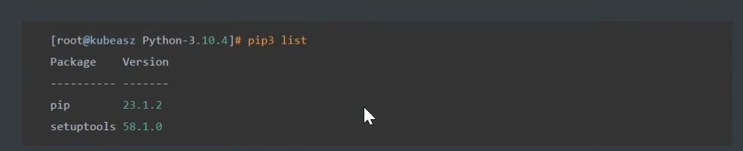 [root@kubeasz temp]# tar xf Python-3.10.4.tgz [root@kubeasz temp]# ls Python-3.10.4 Python-3.10.4.tgz [root@kubeasz temp]# cd Python-3.10.4/ [root@kubeasz Python-3.10.4]# [root@kubeasz Python-3.10.4]# ./configure --enable-optimizations && make altinstall [root@kubeasz Python-3.10.4]# python3.10 --version [root@kubeasz Python-3.10.4]# pip3.10 --version