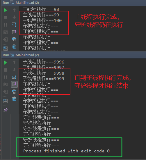 * 1.start()方法调用结束并不意味着子线程开始运行