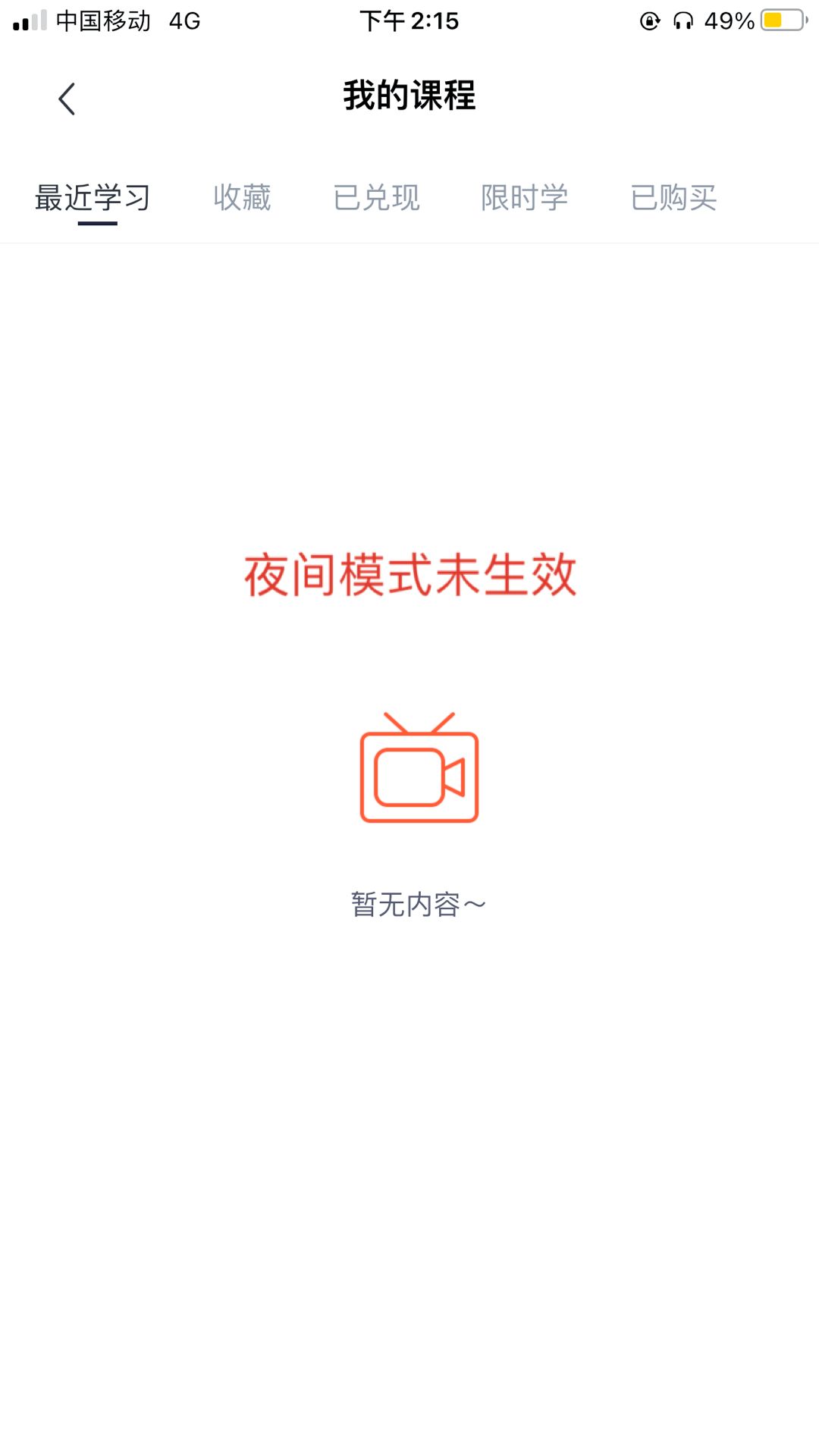 在夜间模式下进入个别子模块,我的课程、电子书等,夜间模式无法正常生效。且app夜间模式并不能跟随系统外观设置(即手机深色模式时app不能自动跟随,只能手动设置)