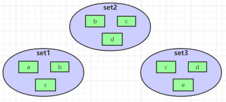 SUNION set1 set2 set3 { a,b,c,d,e }