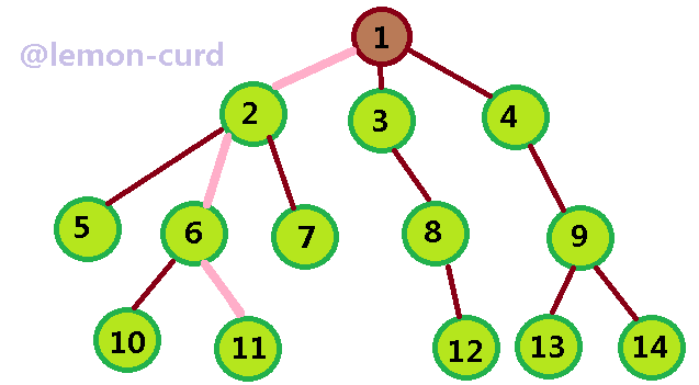 路径:数一下树枝的条数就行啦,举个例子:如图,从1到11之间有3条树枝,那路径的长度就为3