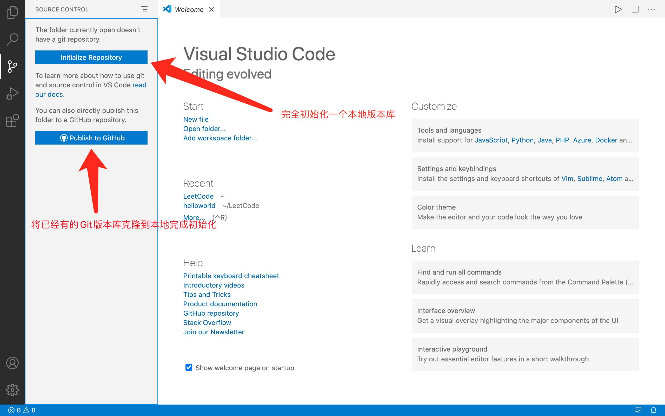 1.首先初始化一个版本库,如果安装了VSCode的情况下可以通过单击初始化存储库来完成初始化: