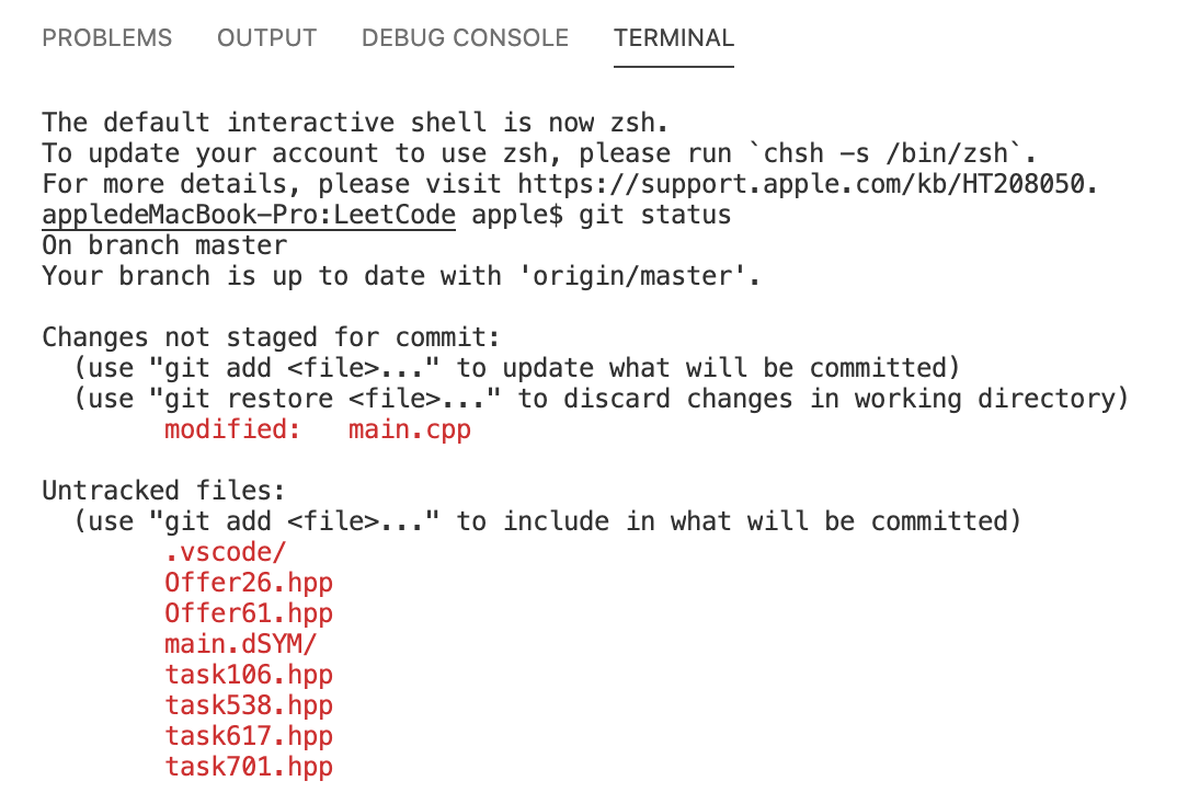 # 会显示两列,第一列是文件的状态,第二列是对应的文件