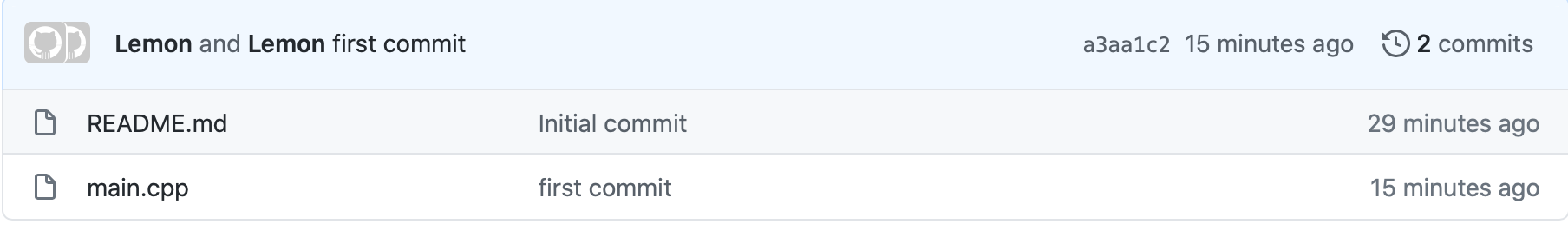 3.接下来就可以通过场景一的操作来完成对本地仓库的修改了,修改完毕之后通过git push命令将本地仓库推送到远程仓库中去,在这里我添加一个main.cpp的文件修改本地仓库内容之后,推送到远程仓库中,效果如下: