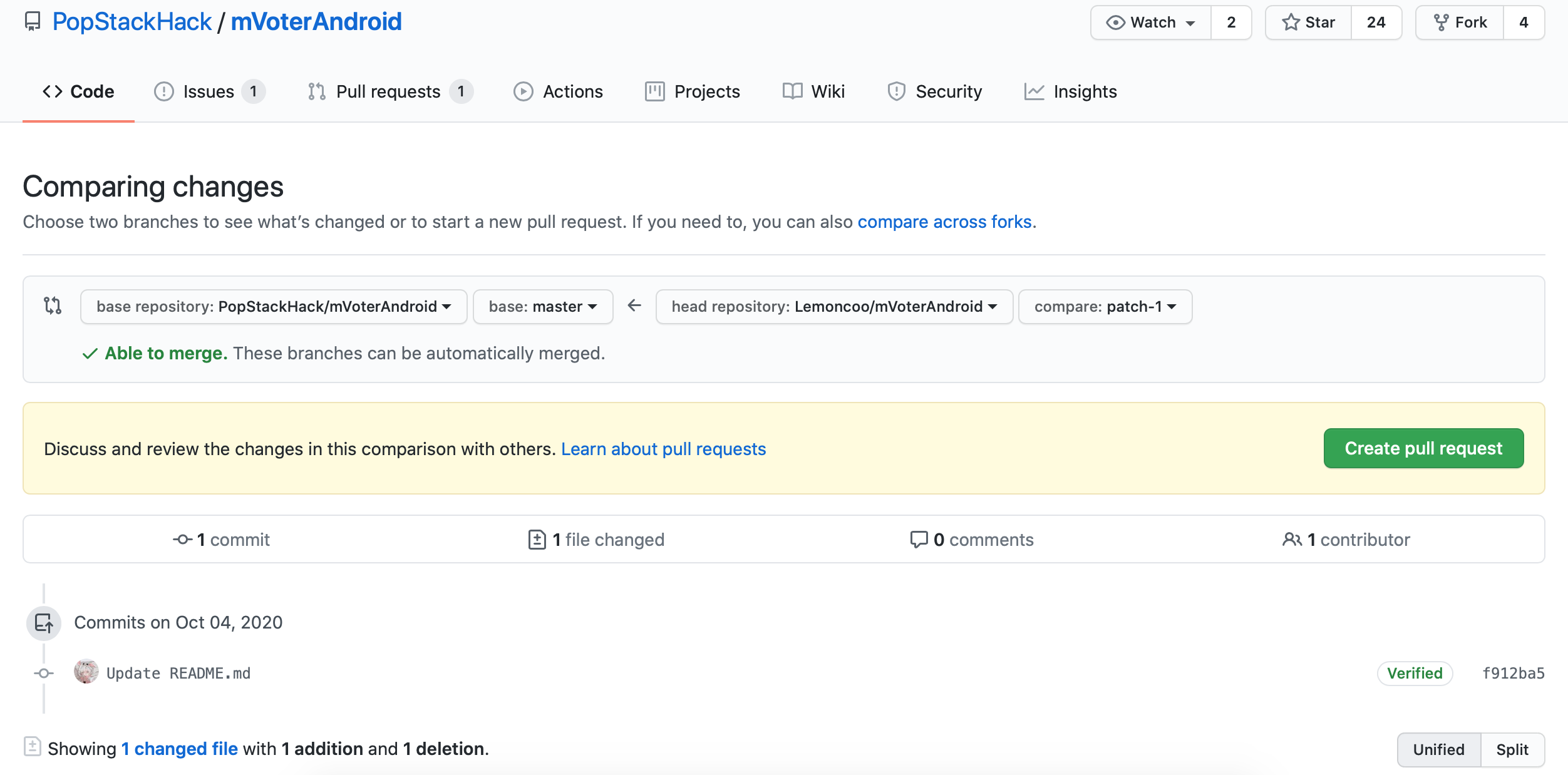 3.之后创建一个新的pull requst,里面可以查看自己改变的信息: