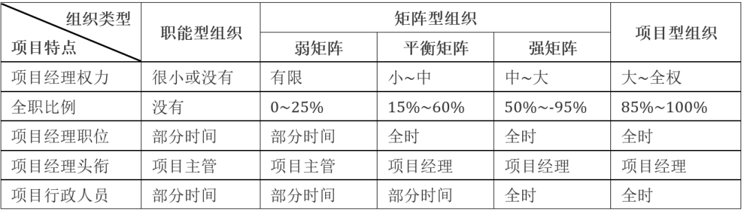 (2)项目型组织,核心特点是:项目经理>>职能经理