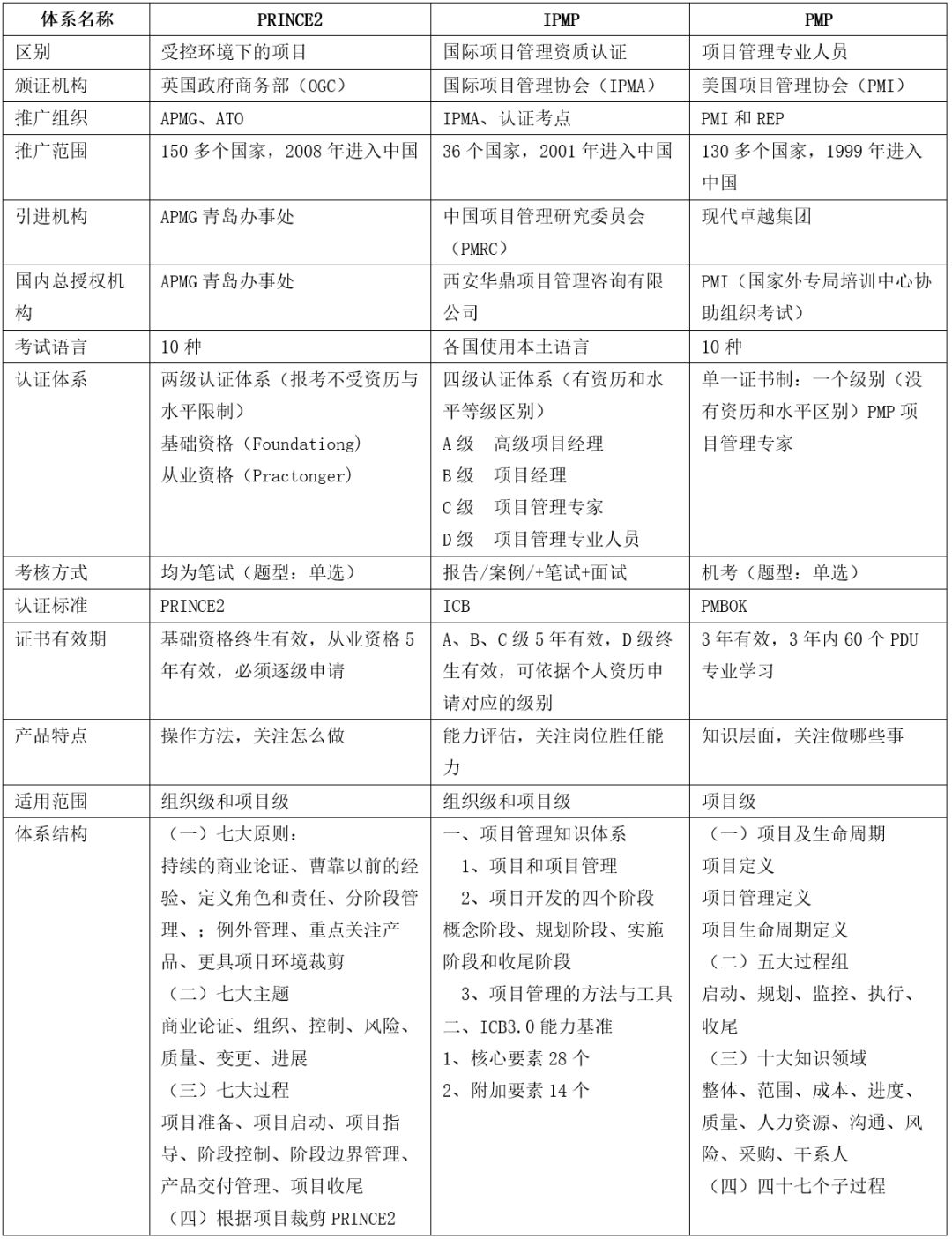 8、常见的三种国际主流项目管理体系和认证方式各有不同,分别如下: