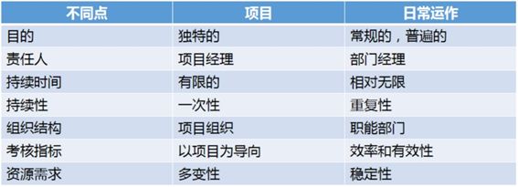 2、项目与日常运作的区别:
