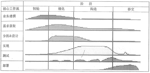 (3)迭代模型:横向4阶段:初始、细化、构造、移交,纵向为核心工作流:业务建模、需求获取、分析与设计、实现、测试、部署。
