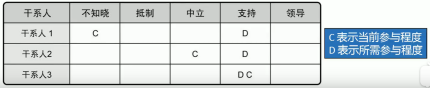 3、干系人的参与程度可分为如下类别(当前与计划的对比):