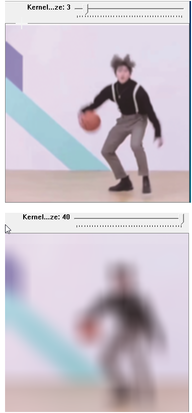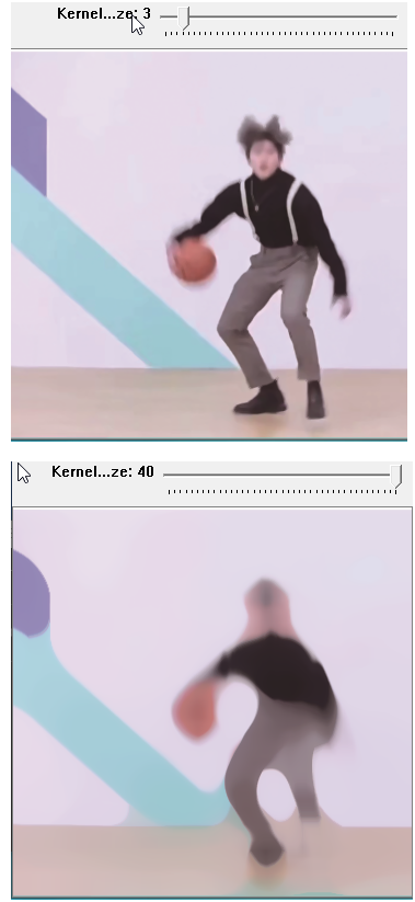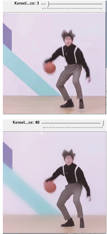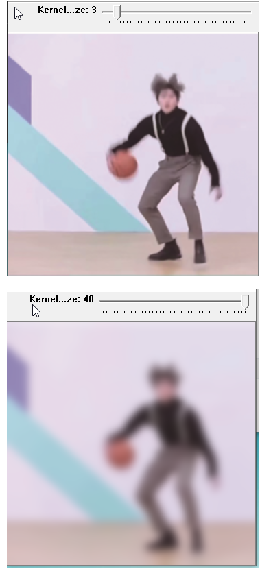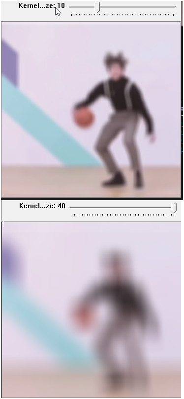 #include "opencv2/opencv.hpp" #include <iostream> using namespace cv; using namespace std; #define MAX_KERNEL_SIZE 40 Mat g_srcImage, g_dstImage1 ,g_dstImage2, g_dstImage3,g_dstImage4,g_dstImage5; int g_nBoxfilterValue = 3; int g_nBlurValue = 3; int g_nGaussianBlurValue =3 ; int g_medianBlurValue = 3; int g_bliateralFilterValue = 3; string boxFilter_window = "Box Filter"; string blurFilter_window = "Blur Filter"; string GaussianBlur_window = "Gaussian Filter"; string scrollbar_title = "Kernel size"; string medianBlur_window = "Median Blur"; string bilateralFilter_window = "Bialteral Filter" ; static void callback_boxfilter(int ,void *); static void callback_blur(int ,void *); static void callback_GaussianBlur(int ,void *); static void callback_medianBlur(int,void *); static void callback_BialteralFilter(int, void *); int main( ) { string pic_path = "pathname"; string src_window = "Source Pic"; g_srcImage = imread(pic_path,1); if(!g_srcImage.data) { cout << "No data in this picture" << endl;return 0;} g_dstImage1 = g_srcImage.clone(); g_dstImage2 = g_srcImage.clone(); g_dstImage3 = g_srcImage.clone(); g_dstImage4 = g_srcImage.clone(); g_dstImage5 = g_srcImage.clone(); /*show src picture*/ namedWindow(src_window,1); imshow(src_window,g_srcImage); //box filter namedWindow(boxFilter_window,1); createTrackbar(scrollbar_title,boxFilter_window,&g_nBoxfilterValue,MAX_KERNEL_SIZE,callback_boxfilter); callback_boxfilter(g_nBoxfilterValue,0); imshow(boxFilter_window,g_dstImage1); //Blur filter namedWindow(blurFilter_window,1); createTrackbar(scrollbar_title,blurFilter_window,&g_nBlurValue,MAX_KERNEL_SIZE,callback_blur); callback_blur(g_nBlurValue,0); imshow(blurFilter_window,g_dstImage2); //Guassian filter namedWindow(GaussianBlur_window,1); createTrackbar(scrollbar_title,GaussianBlur_window,&g_nGaussianBlurValue,MAX_KERNEL_SIZE,callback_GaussianBlur); callback_GaussianBlur(g_nGaussianBlurValue,0); imshow(GaussianBlur_window,g_dstImage3); //median blur namedWindow(medianBlur_window,1); createTrackbar(scrollbar_title,medianBlur_window,&g_medianBlurValue,MAX_KERNEL_SIZE,callback_medianBlur); callback_medianBlur(g_medianBlurValue,0); imshow(medianBlur_window,g_dstImage4); //bilateralFilter namedWindow(bilateralFilter_window,1); createTrackbar(scrollbar_title,bilateralFilter_window,&g_bliateralFilterValue,MAX_KERNEL_SIZE,callback_BialteralFilter); callback_BialteralFilter(g_bliateralFilterValue,0); imshow(bilateralFilter_window,g_dstImage5); while(char(waitKey(1)) != 'q') {} return 0; } static void callback_boxfilter(int ,void *){ boxFilter(g_srcImage,g_dstImage1,-1,Size(g_nBoxfilterValue+1,g_nBoxfilterValue+1)); imshow(boxFilter_window,g_dstImage1); } static void callback_blur(int ,void *){ blur(g_srcImage,g_dstImage2,Size(g_nBlurValue+1,g_nBlurValue+1)); imshow(blurFilter_window,g_dstImage2); } static void callback_GaussianBlur(int ,void *){ g_nGaussianBlurValue = g_nGaussianBlurValue &-1 ; if(g_nGaussianBlurValue>40) {g_nGaussianBlurValue -=2;} //cout << g_nGaussianBlurValue <<endl; if(g_nGaussianBlurValue%2 == 1){GaussianBlur(g_srcImage,g_dstImage3,Size(g_nGaussianBlurValue,g_nGaussianBlurValue),0,0);} imshow(GaussianBlur_window,g_dstImage3); } static void callback_medianBlur(int,void *){ g_medianBlurValue = g_medianBlurValue &-1 ; if(g_medianBlurValue>40) {g_medianBlurValue -=2;} if(g_medianBlurValue%2 == 1) medianBlur(g_srcImage,g_dstImage4,g_medianBlurValue); imshow(medianBlur_window,g_dstImage4); } static void callback_BialteralFilter(int , void *){ bilateralFilter(g_srcImage,g_dstImage5,g_bliateralFilterValue,g_bliateralFilterValue*2,g_bliateralFilterValue/2); imshow(bilateralFilter_window,g_dstImage5); }