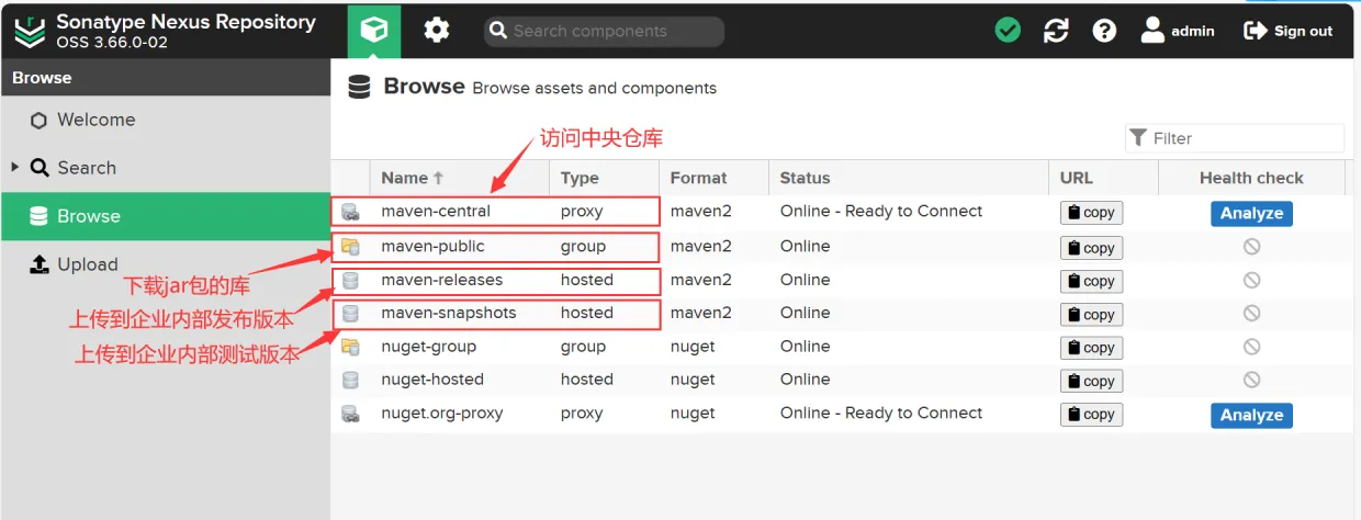对jar包的统一管理,Maven提供中央仓库,私服,本地仓库解决jar包的依赖和相关依赖的下载。 如下图所示:包括蓝、黄两个部分分别对应着