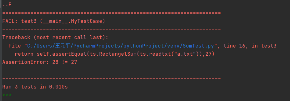 return self.assertEqual(ts.RectangelSum(ts.readtxt("a.txt")),27)#错误组,测试列举错误