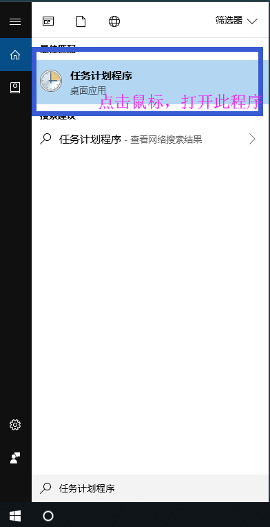 (2) win10的话,在windows的搜索栏输入:“任务计划程序”。