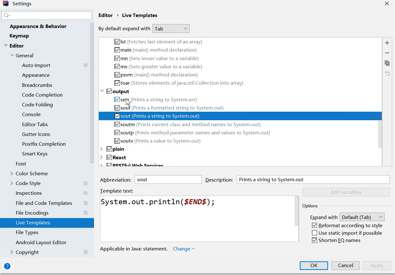 2.输出语句 : sout