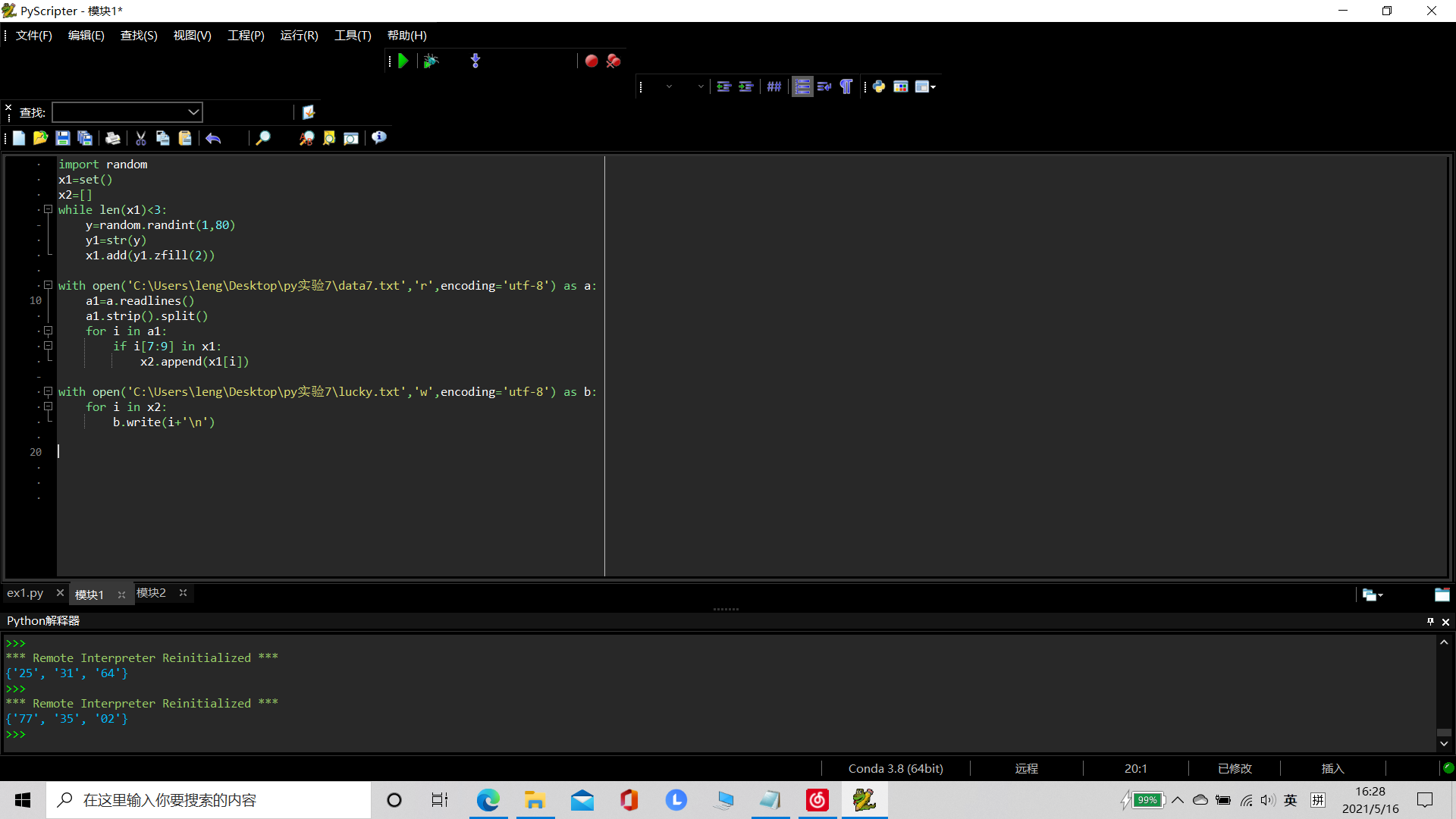 with open('C:\Users\leng\Desktop\py实验7\lucky.txt','w',encoding='utf-8') as b: