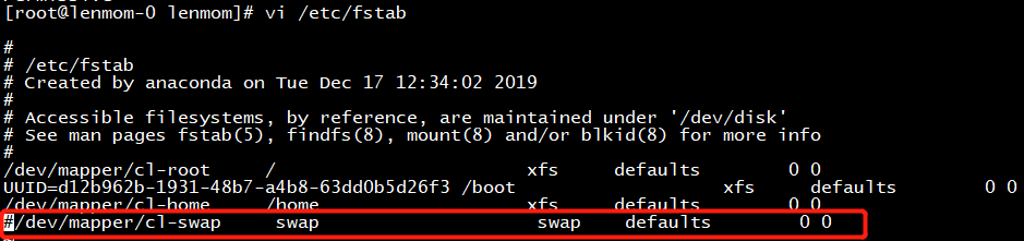 vi /etc/fstab