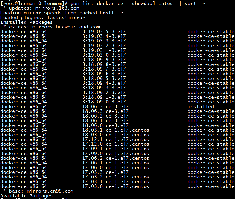 yum list docker-ce --showduplicates | sort -r