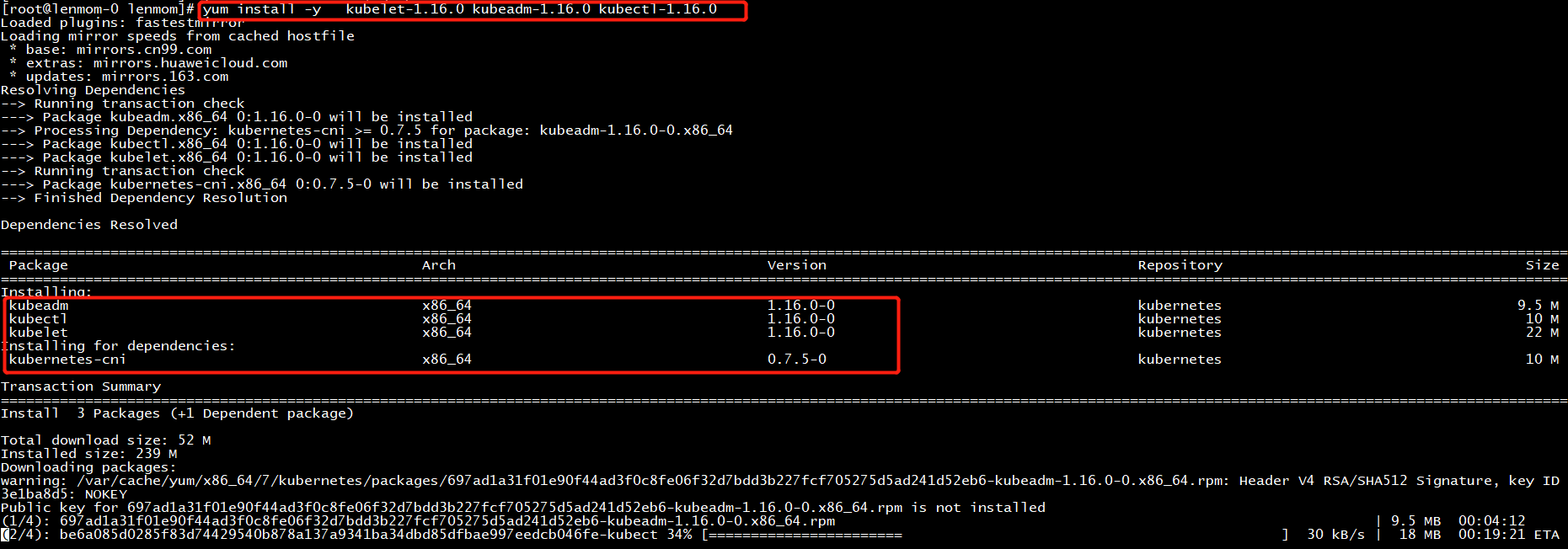 yum install -y kubelet-1.16.0 kubeadm-1.16.0 kubectl-1.16.0 --disableexcludes=kubernetes