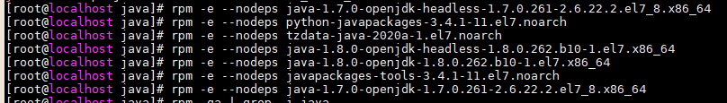 rpm -e --nodeps java-1.7.0-openjdk-headless-1.7.0.261-2.6.22.2.el7_8.x86_64