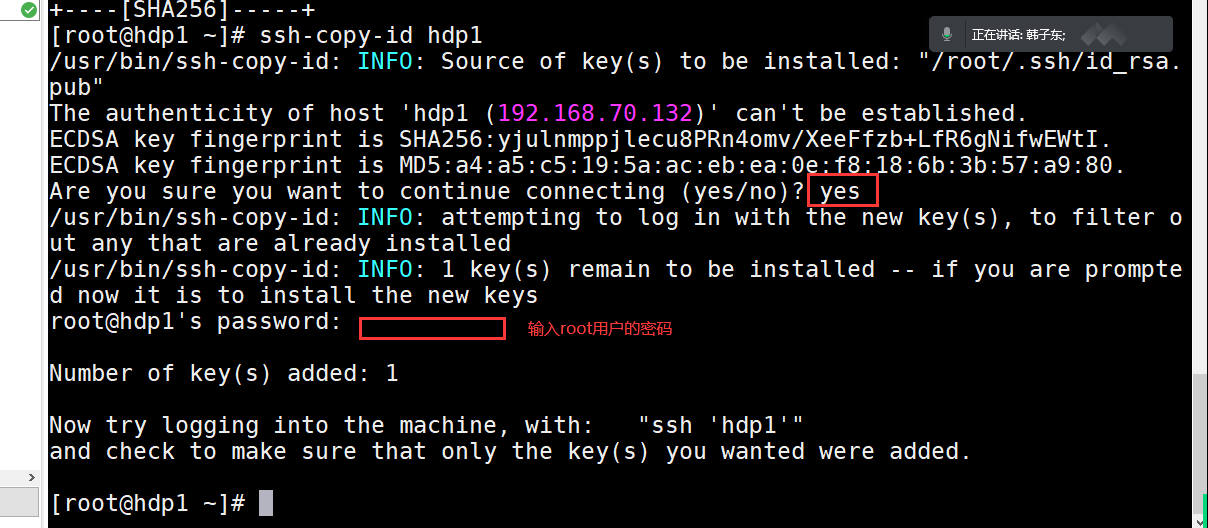 ssh-copy-id hdp1 ( hdp1 为虚拟机名称) 或者 cat /root/.ssh/id_rsa.pub >> /root/.ssh/authorized_keys