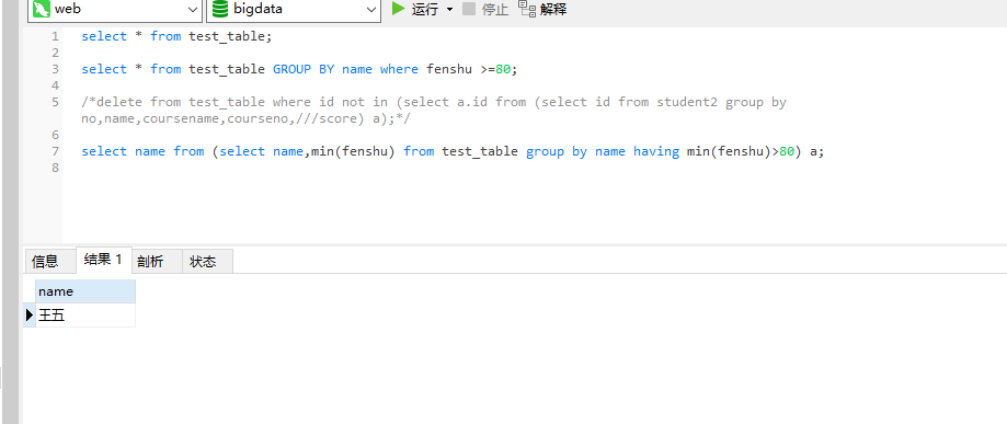 用sql查询,每个同学名下所有课程都大于等于80分的,同学姓名:(不一定有三门课程)
