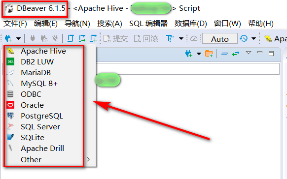 可以看到可以用这个客户端连接:mysql、Oracle、hive等。