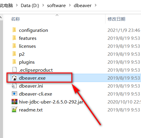 2、鼠标双击:dbeaver.exe,启动客户端