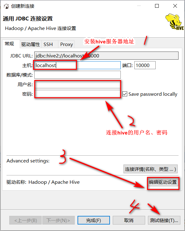 4、配置好了上图的1、2然后测试连接,如果连接不上,就需要配置驱动,点击:编辑驱动设置,进入配置界面