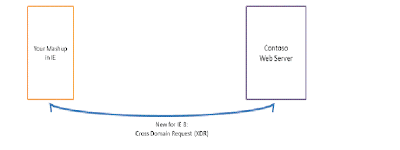 而在IE8 beta2中,Web页面通过使用xDomainRequest对象代替server-to-server的请求来实现跨域请求。如下图所示: