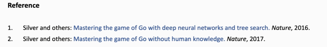 - evaluation:分数分为两个部分:状态价值函数给的分数v和最后游戏结束的奖励结果r,然后用(v+r)/2的值赋给a作为它的分数