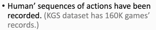 即从人类棋局记录中模仿学习(在2016年的AlphaGo中有用到,在最新的AlphaGo zero中则没有用到)