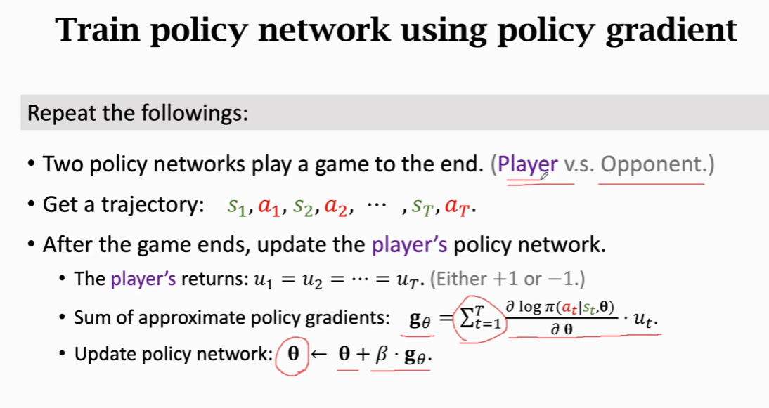 - 用策略梯度算法来训练策略网络