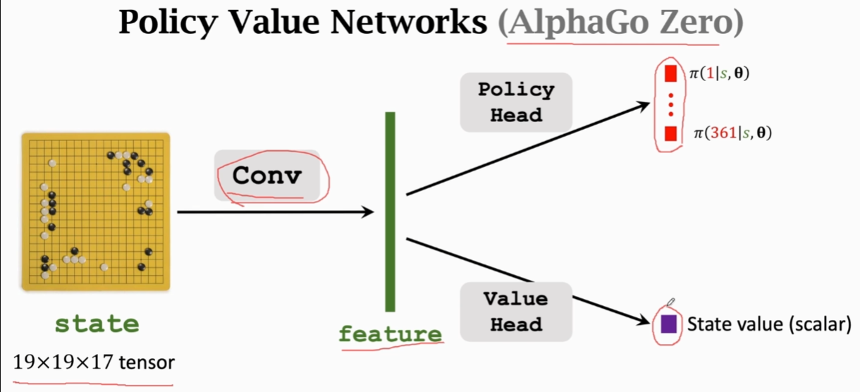 策略网络和价值网络共用卷积层的特征向量