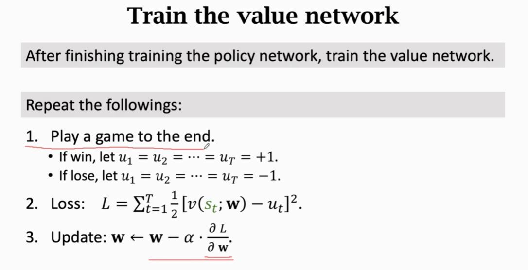 - 训练价值网络(用的不是actor-critic方法)