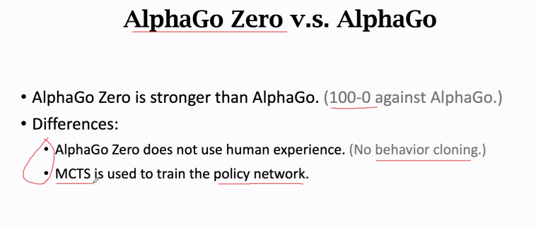 - AlphaGo zero没有behavior cloning的过程