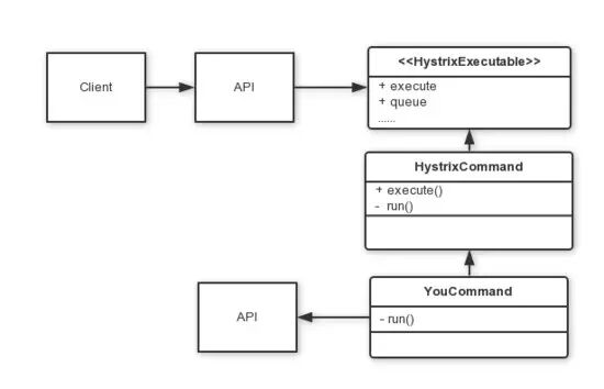 Hystrix采用了命令模式,客户端需要继承抽象类HystrixCommand并实现其特定方法。为什么使用命令模式呢?使用过RPC框架都应该知道一个远程接口所定义的方法可能不止一个,为了更加细粒度的保护单个方法调用,命令模式就非常适合这种场景。