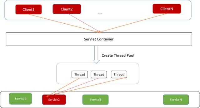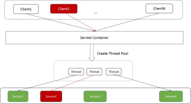 Servlet Container是我们的容器,如Tomcat。一个用户请求有可能依赖其它多个外部服务。考虑到应用容器的线程数目基本都是固定的(比如Tomcat的线程池默认200),当在高并发的情况下,如果某一外部依赖的服务(第三方系统或者自研系统出现故障)超时阻塞,就有可能使得整个主线程池被占满,增加内存消耗,这是长请求拥塞反模式(一种单次请求时延变长而导致系统性能恶化甚至崩溃的恶化模式)。