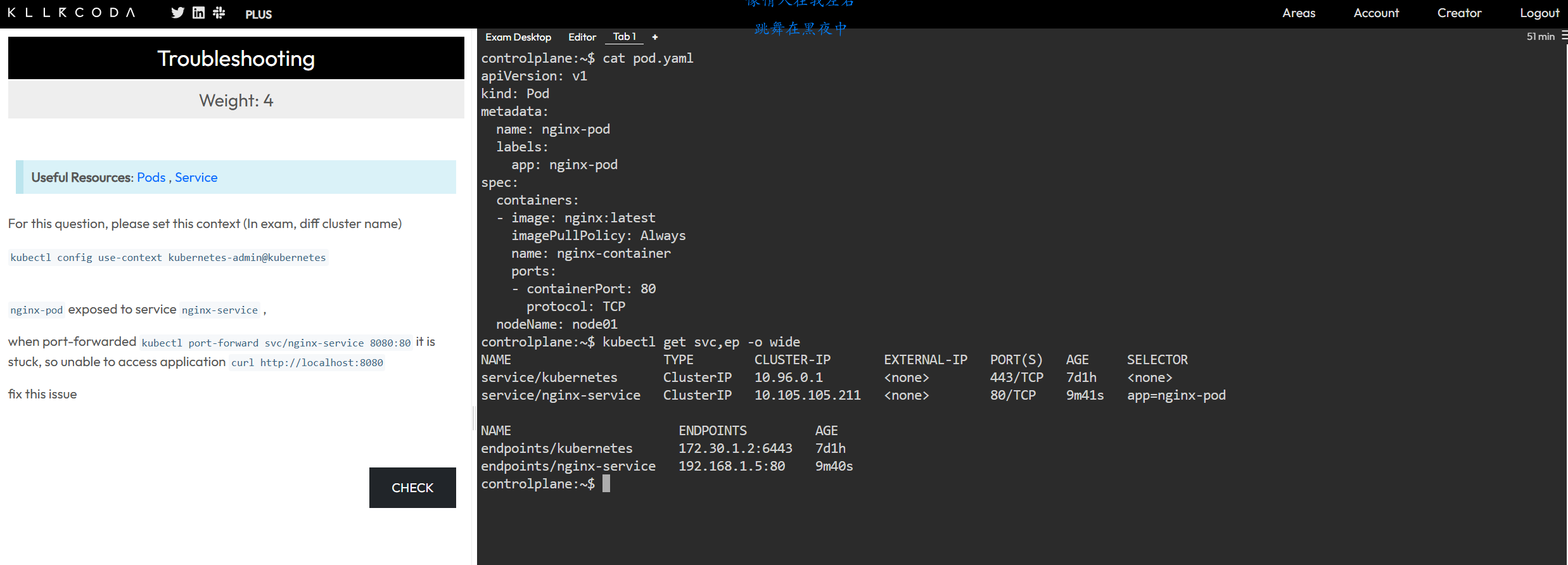题目中明确的指出:要让svc关联到pod然后本地能curl到pod的服务。svc底层基于pod的标签来关联pod,svc为pod提供负载均衡服务发现以及充当pod南北向流量的一个关卡。
