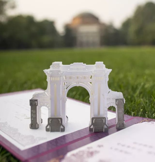在打开录取通知书的那一刻,你会发现一座独具科技感的微型“二校门”跃然纸上。