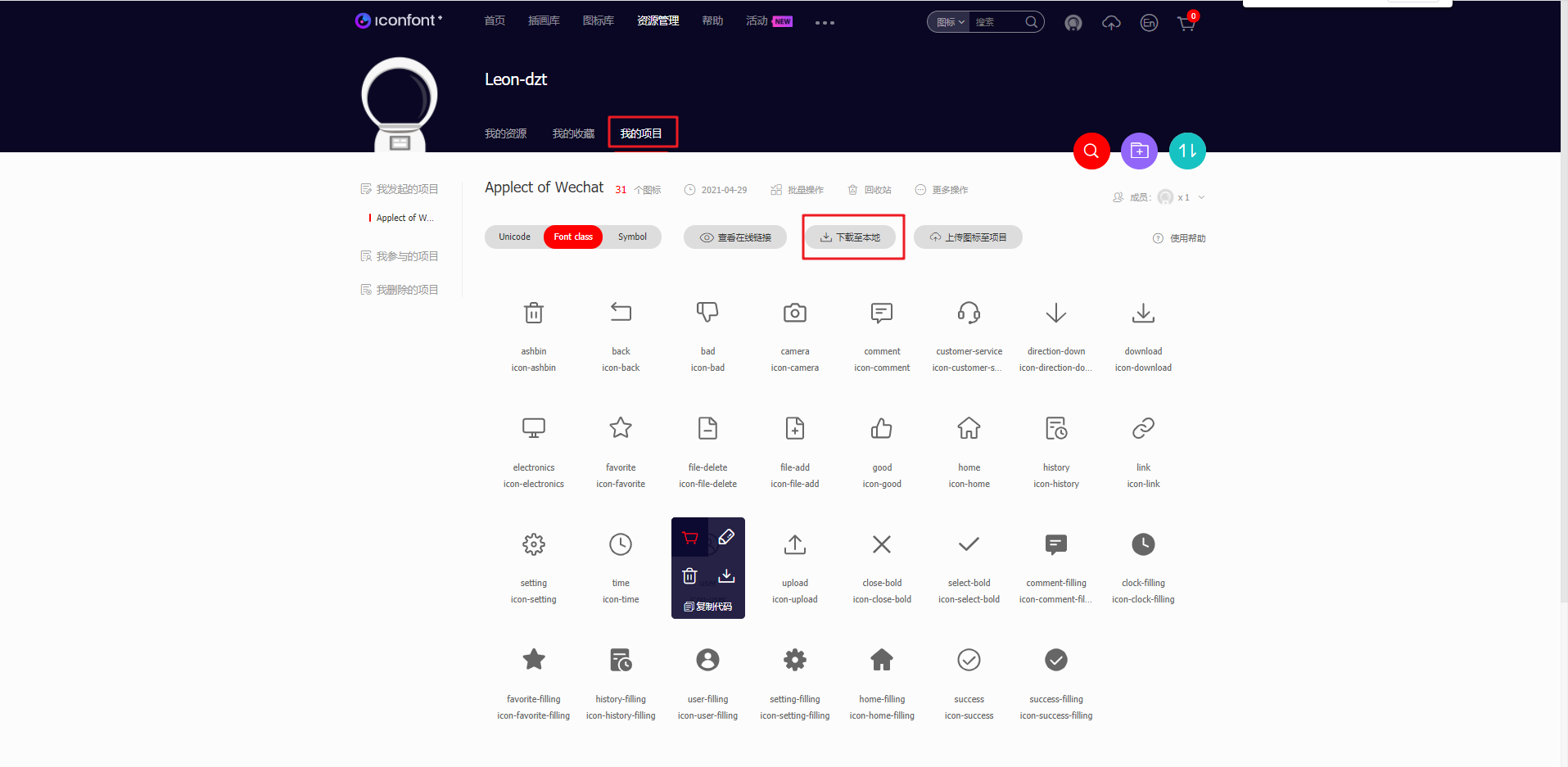 先去阿里云矢量图标库http://www.iconfont.cn/添加图标至自己的项目中然后点击下载至本地