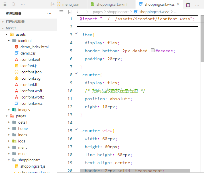 注意:icon的样式可以在刚才更改后缀名的wxss中更改。