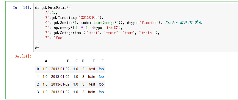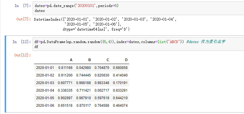 用含日期时间索引与标签的 NumPy 数组生成 DataFrame: