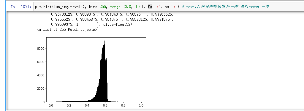 直方图是找到有趣区域的好工具。要创建图像数据的直方图,请使用hist()函数。