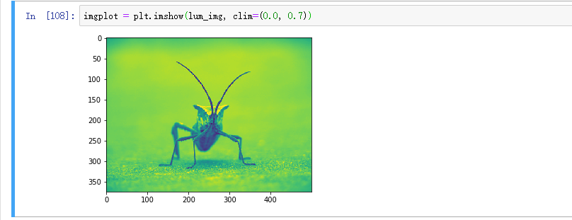 现在,对于亮度(2D,无颜色)图像,将应用默认的颜色图(又名查找表,LUT)。默认名称为viridis。还有很多其他可供选择。